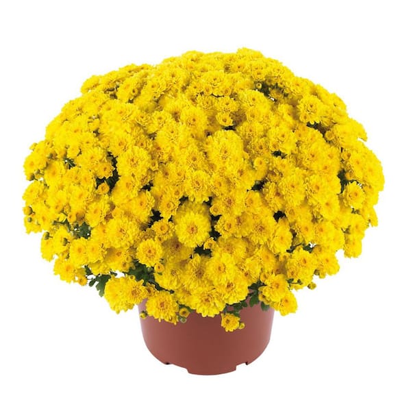Chrysanthemum (Mum) Yellow Live Plant in 8.5 in. Deco Color Planter
