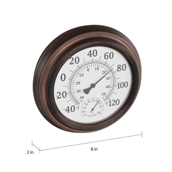 8 in. Indoor/Outdoor Wall Thermometer and Hygrometer Gauge in Bronze