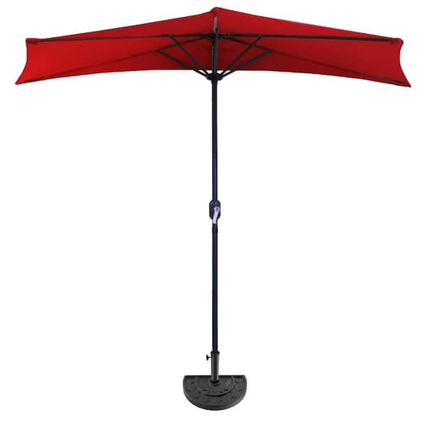 9 ft. Semicircle Market Patio Umbrella with Base in Red