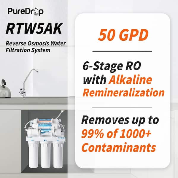 6-Stage Under Sink Reverse Osmosis Water Filtration System with Alkaline Remineralization, Plus Extra 3 Pre-filters
