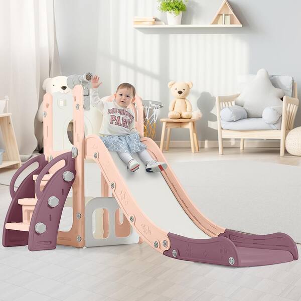 Purple 5 in 1 Toddler Freestanding Spaceship Set with Slide, Toy Storage Organizer, Tunnel and Basketball Hoop