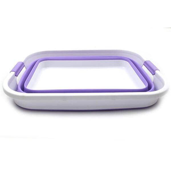 Purple Collapsible Plastic Laundry Basket with Cut-out Handles 41 Liter