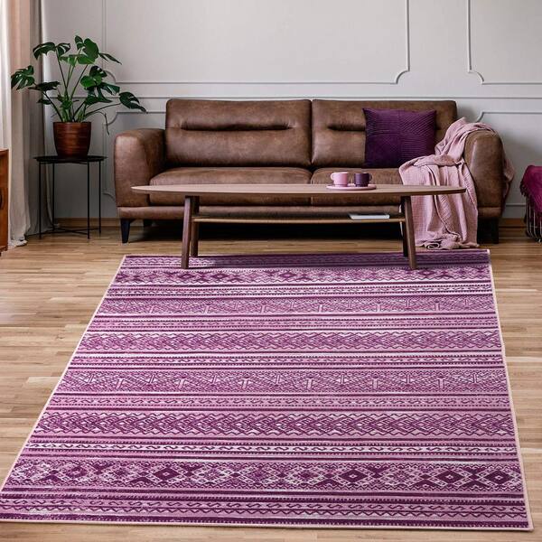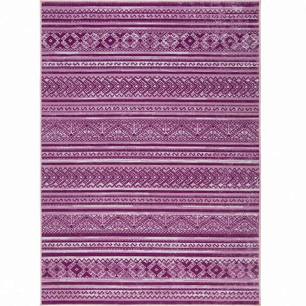 Purple Polypropylene 6 ft. 7 in. x 9 ft. Geometric Indoor Area Rug