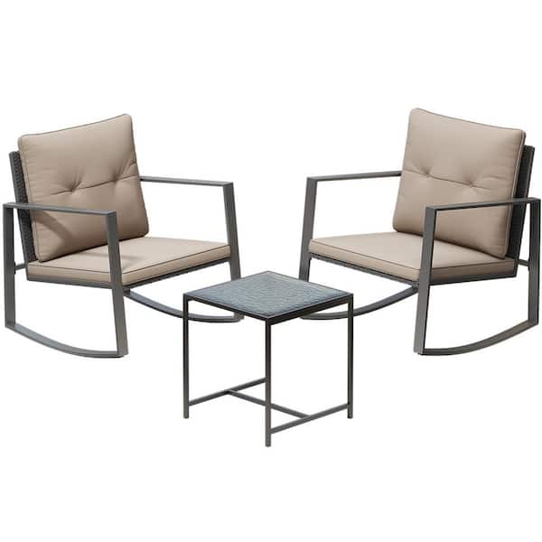 Serenity Decor 3-Piece Rocking Bistro Set--Glass Coffee Table with 2 Chairs-Coffee Brown