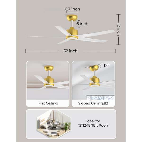 52 in. Indoor, Outdoor White LED Ceiling Fan with Remote, Reversible Quiet DC Motor and 5 Blades 3 CCT Light