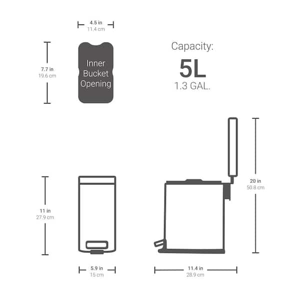 1.3 Gal. Matte White Trash Can, Step-on, Slim Shape 2PCS Set