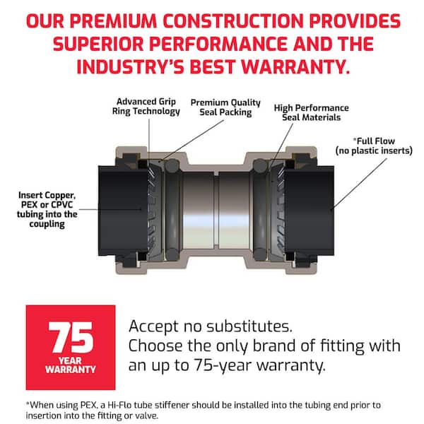 • Quickest connection method for copper, PEX and CPVC pipes