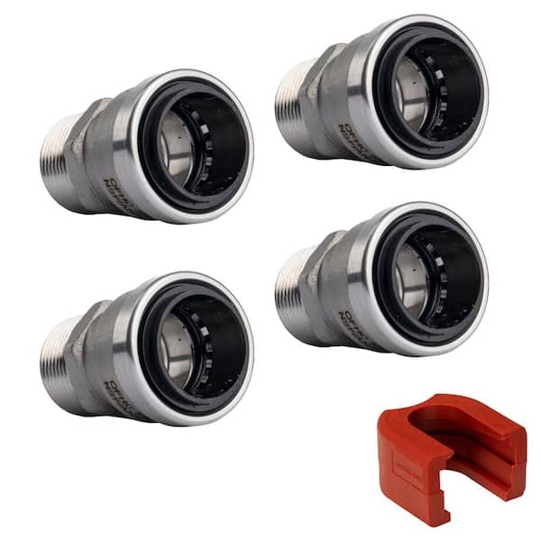 3/4 in. Stainless Steel Push-to-Connect x MNPT (Male Thread) Adapter Fitting with SlipClip Release Tool (4-Pack)