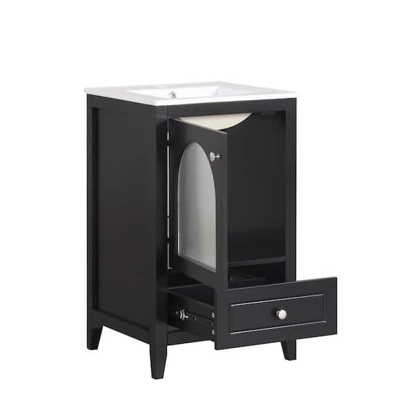 18.3 in. D x 20in. W x 34 in. H Black Bath Vanity with Soft Closing Glass Door, A Drawer,Top Ceramic with White Basin