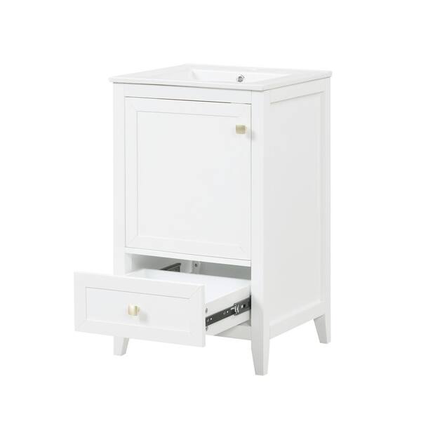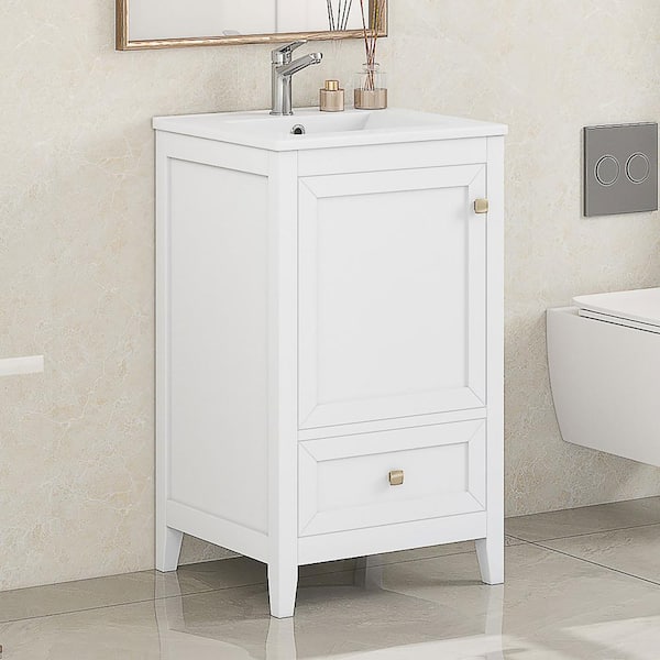 18.3 in. D x 20in. W x 34 in. H White Bathroom Vanity,Bath Cabinet with Soft Closing Door,Top Ceramic with White Basin