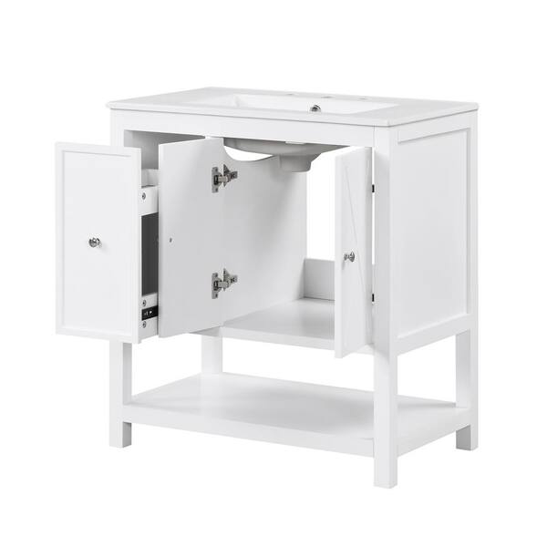 30 in. D x 18.3 in. W x 33.9 in. H White Bathroom Vanity with Door and Drawer, Solid Wood,Top with White Ceramic Basin