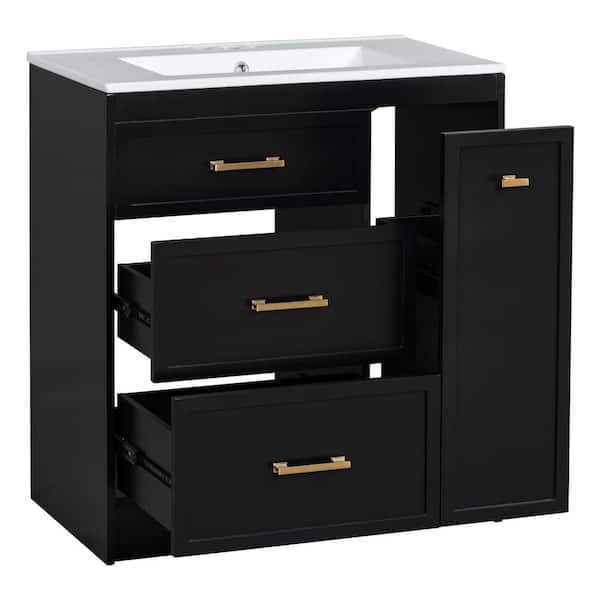 30 in. W x 18. 3 in. D x 34 in. H Large Storage Single Sink Freestanding Black Bath Vanity, with White Ceramic Top Basin