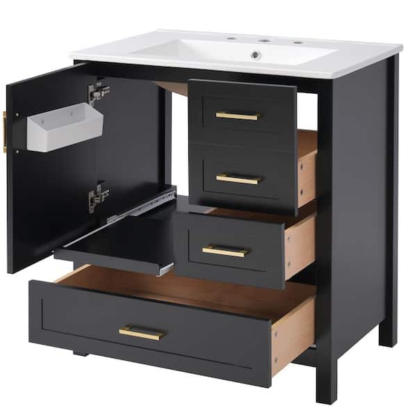 30 in. W x 18. 3 in. D x 34 in. H in Single Sink Freestanding Black Bath Vanity, with White Ceramic Top Basin