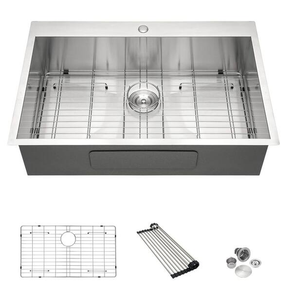 33 in. Drop in Single Bowl 18-Gauge Brushed Nickel Stainless Steel Kitchen Sink with Bottom Grids