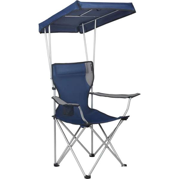 Quad Folding Canopy Shade Blue Steel Outdoor Camping Chair