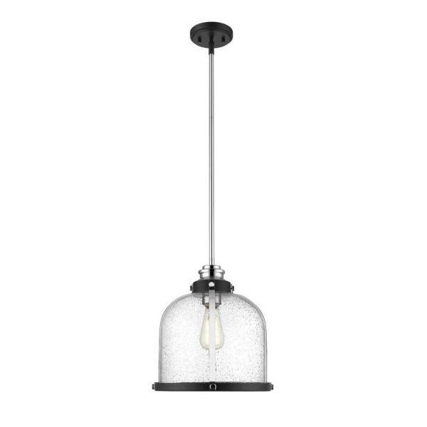 Quadra 1-Light Matte Black and Chrome Pendant with Clear Seedy Glass Shade