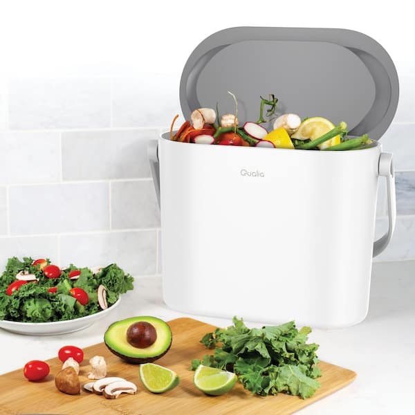 1 Gal. ABS Plastic Slim Multi-Purpose Countertop Compost Trash Can with Gray Lid