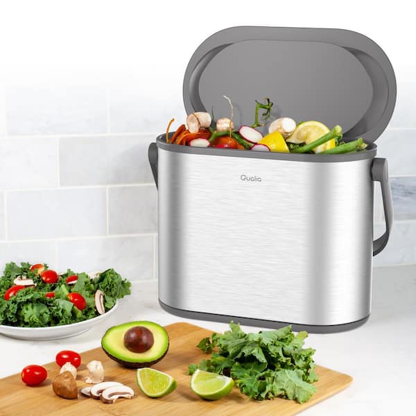 1 Gal. Stainless Steel Slim Multi-Purpose Countertop Compost Trash Can with Gray Lid