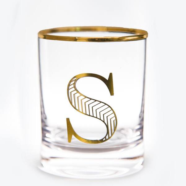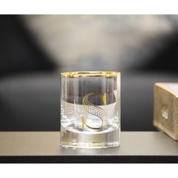 Monogram 11 oz. Gold Rim Gold Letter Double Old-Fashioned Glass (Set of 2)
