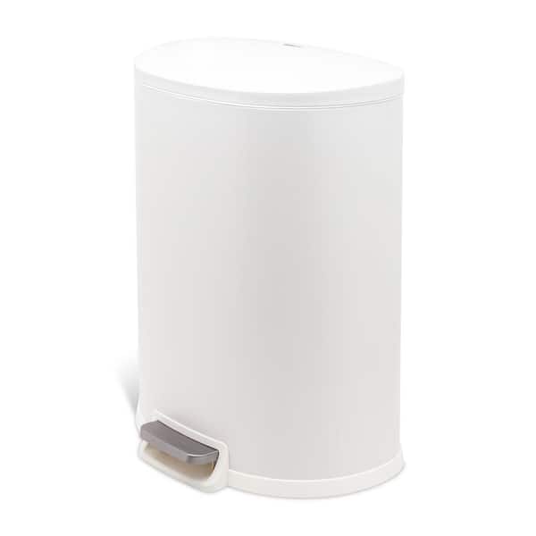 13 Gal. Matte White Stainless Steel Kitchen Trashcan, Step-on, D Shape