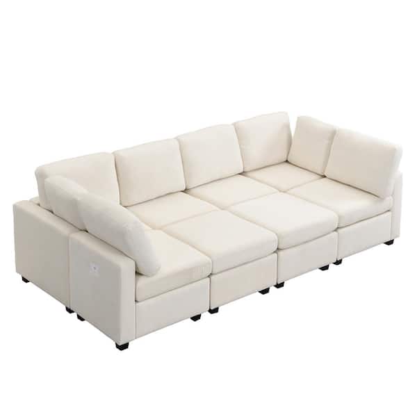 103.1 in. Straight Arm 3-Piece Chenille Fabric Sectional Sofa in Beige with 2 Movable Ottoman and 3 USB Ports