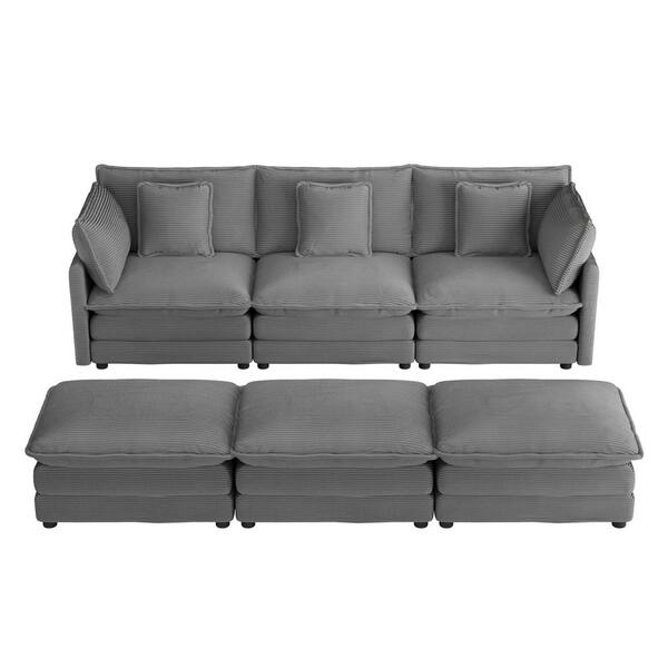 112.6 in. Corduroy Upholstered Modular Sectional Sofa in. Dark Gray with Movable Ottomans