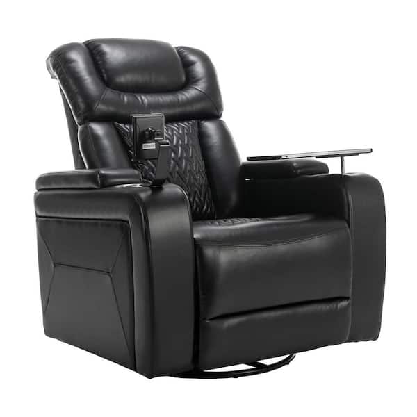 270 Degree Swivel Black PU Leather Recliner with Phone and Cup Holder, Hidden Arm Storage and USB Port