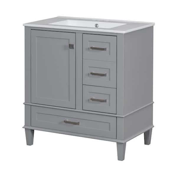 30 in. W x 18 in. D x 34 in. H Single Sink Freestanding Bath Vanity in Grey with White Ceramic Top