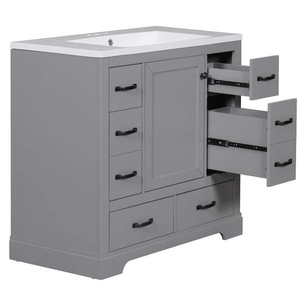 36 in. W x 18 in. D x 34.2 in. H Single Sink Freestanding Bath Vanity in Gery with White Ceramic Top