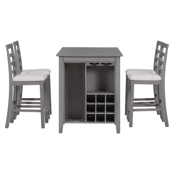 5-Piece Gray Multi-Functional Wood Counter Height Dining Set