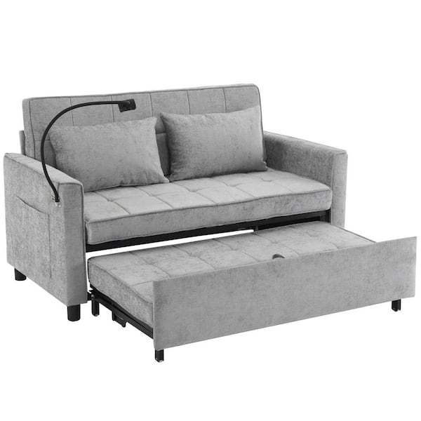 56.9 in. Gray Chenille 2-Seater Loveseat with Reversible Backrest, USB Ports and Phone Holder