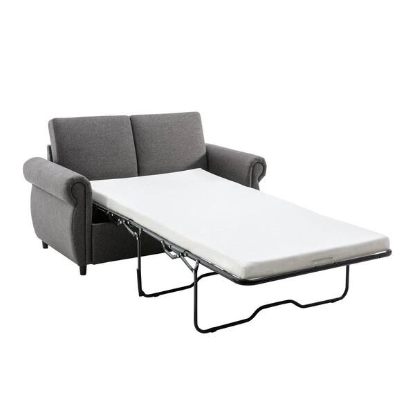 57.9 in. Gray Linen 2-Seater Loveseat with Pull Out Bed and 2 USB Ports