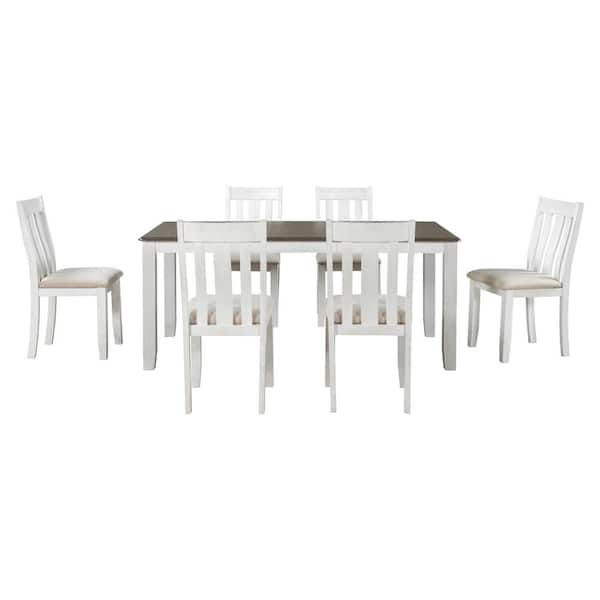 7-Piece Brown Wood Top Dining Table Set Seats 6 with Extendable Table and Upholstered Chairs