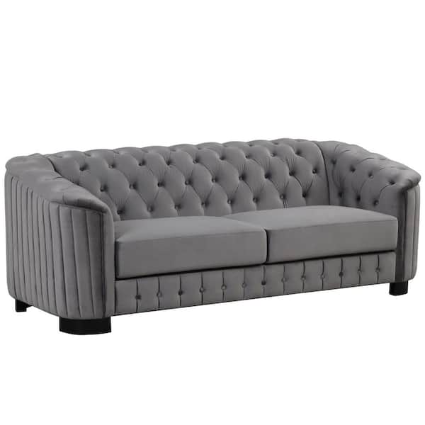 82.4 in. Rolled Arm Velvet Rectangle Upholstered Sofa in Gray (Seats 3)