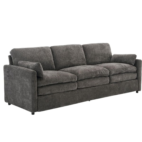 89 in. Rolled Arm Chenille Upholstered Rectangle Sofa in Gray