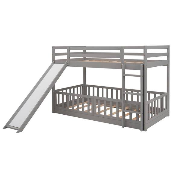 Alimi Gray Twin Over Twin Bunk Bed with Slide and Ladder
