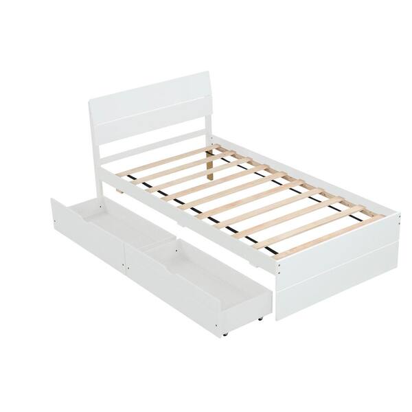 Cream White Wood Frame Twin Size Platform Bed with 2-Drawers