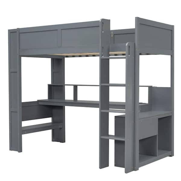 Dark Gray Twin Gaming Loft Bed with Desk, LED Strip and Charging Station