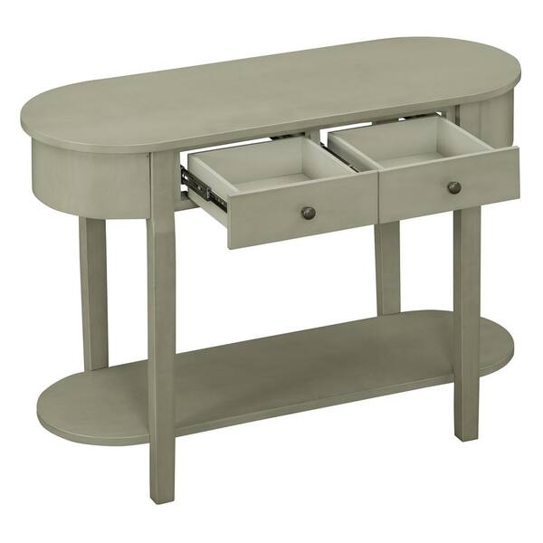 Elegant Retro 40 in. Gray Oval Wood Console Table with Drawers and Open Shelf