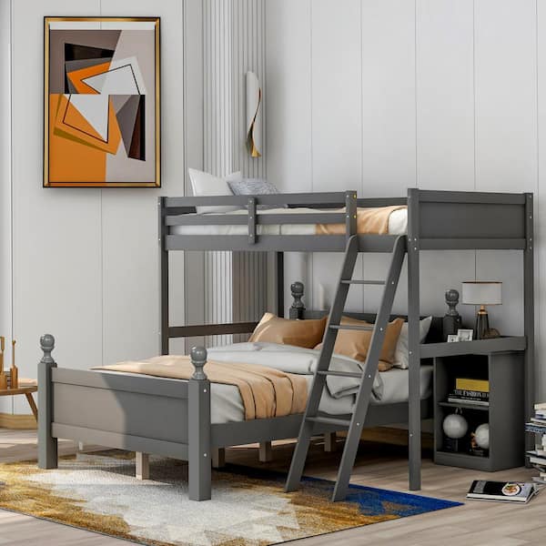 Eljah Gray Twin over Full Bunk Bed with Cabinet