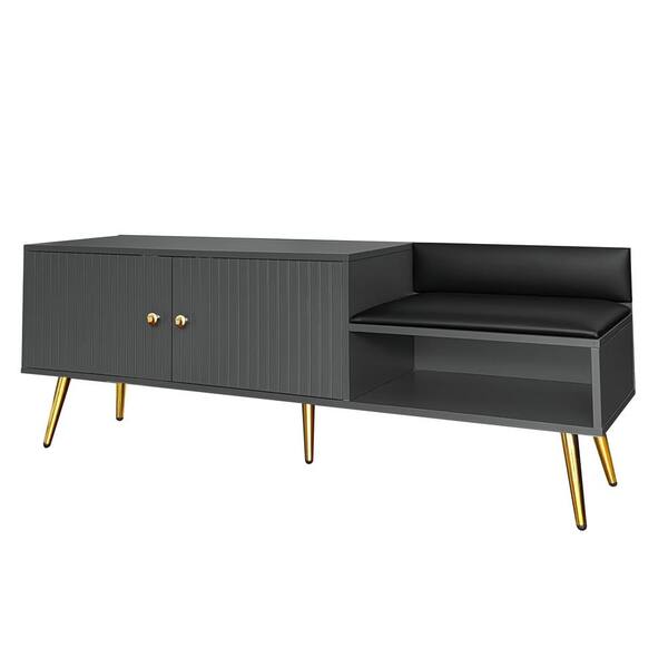 Gray Dining Bench with Back with Hidden Storage 54.5 in .