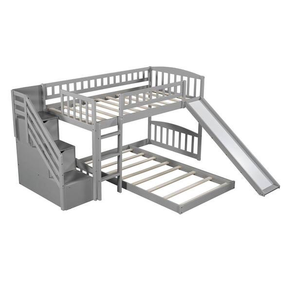 Gray Stairway Twin Over Twin Bunk Bed with 2-Drawers and Slide