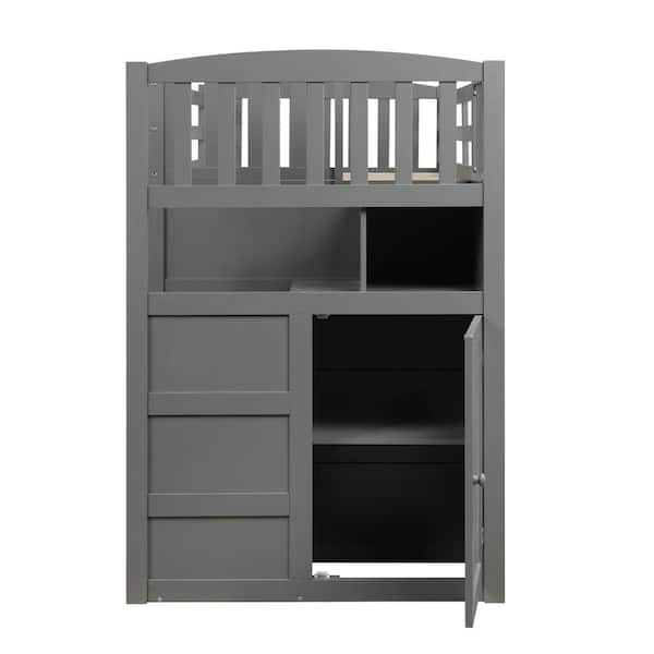 Gray Twin Over Full/Twin Bunk Bed with Storage Shelves and Drawers