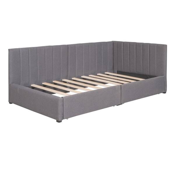 Gray Upholstered Twin Size Daybed with 2 Storage Drawers