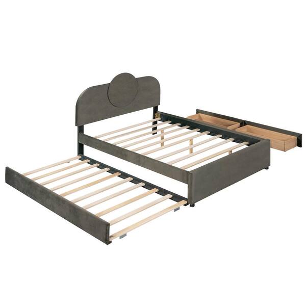 Gray Wood Frame Full Size Platform Bed with LED, Trundle and USB Ports