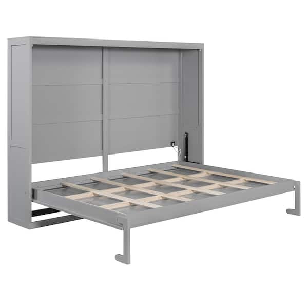 Gray Wood Frame Queen Size Murphy Bed with LED Lights
