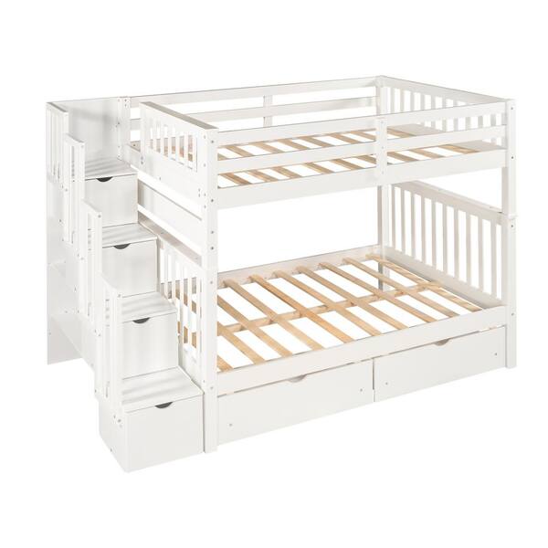 Hazzard White Full Over Full Bunk Bed with Shelves and 6 Storage Drawers