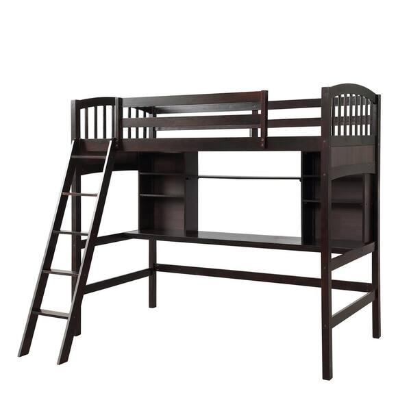 Kalea Espresso Twin Size Loft Bed with Desk and Storage Shelves