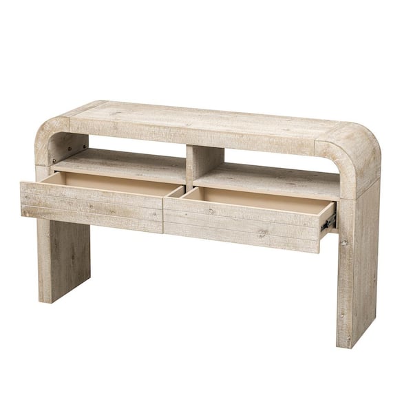 Retro 52 in. Natural Wood Wash Specialty Curved Wood Console Table with 2-Drawers