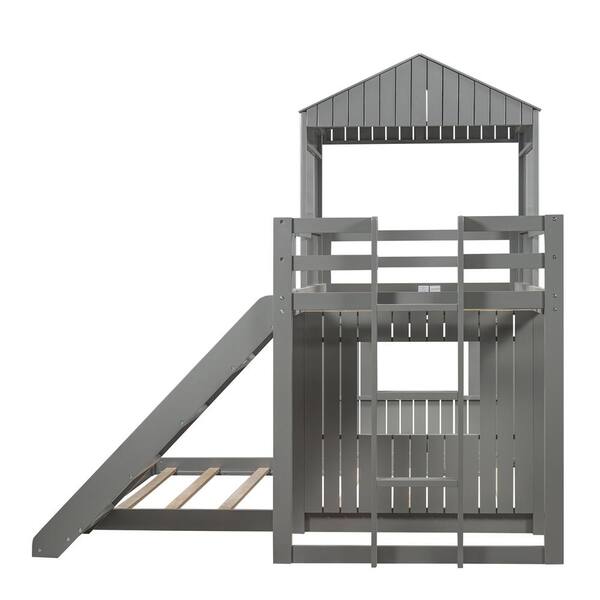 Topanga Gray Twin Over Full House Style Bunk Bed with Slide